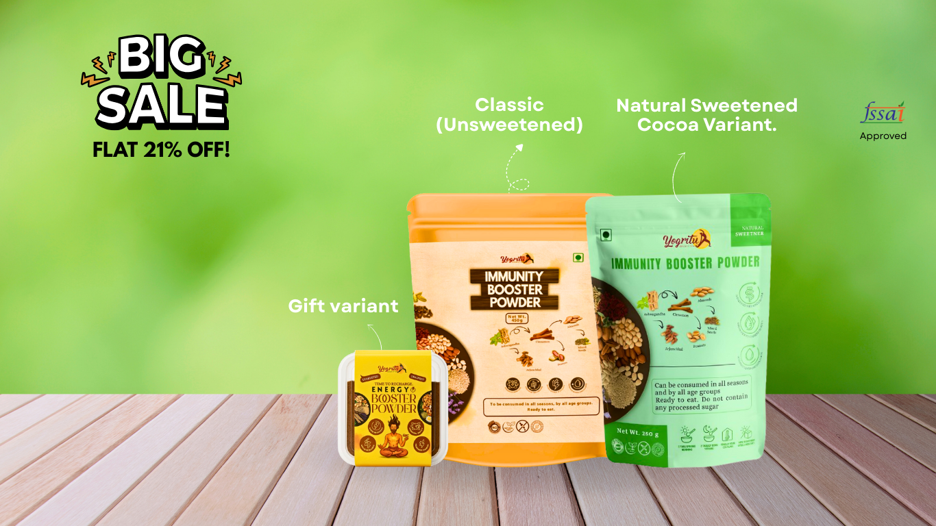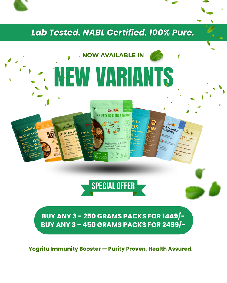 Discover the power of Yogritu Immunity Booster Powder — a natural, FSSAI-certified blend of herbs, spices, nuts, and seeds designed to strengthen your immunity, boost energy, and support holistic well-being....
